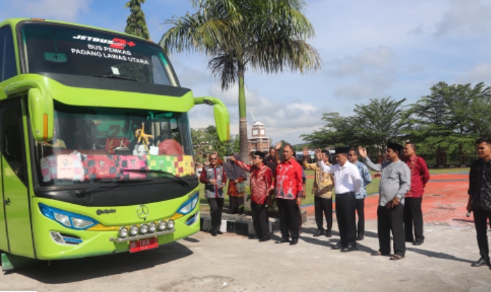 PALUTA,Trans Nusantara.cp.id-Penjabat Bupati Padang Lawas Utara, Patuan Rahmat Syukur P Hasibuan, S.STP,MM memberangkatkan 60 Kafilah asal Padang Lawas Utara terdiri dari 46 Kafilah putra/i, dan pendamping 14 orang ke Sipirok, Kabupaten Tapanuli Selatan untuk mengikuti MTQ ke 39 Tingkat Propinsi Sumatera. Peserta diberangkatkan dari halaman Kantor Bupati Padang Lawas Utara,Kamis (20/06/2024).