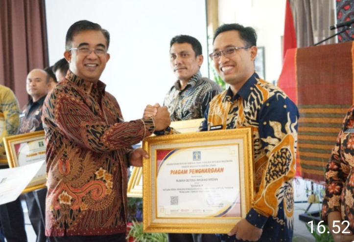 Penghargaan ini diterima langsung oleh Kepala Seksi Keamanan dan Ketertiban Rumah Detensi Imigrasi Medan.