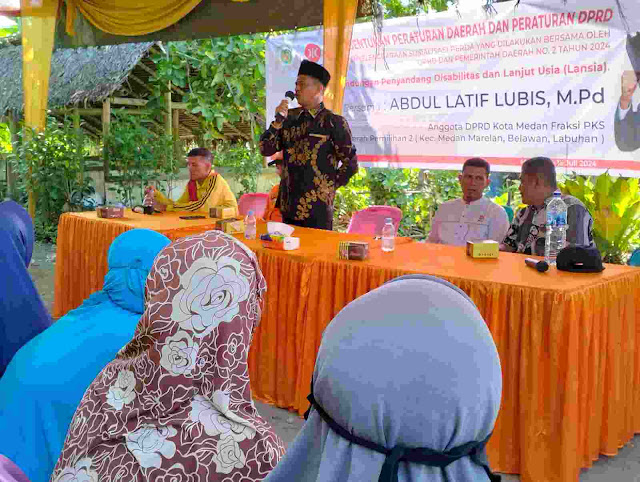 “Dengan tersingkirkan kelompok disabilitas maka kami yang tergabung dalam anggota DPRD Medan membuat peraturan dan undang-undang yang akan melindungi kelompok-kelompok disabilitas tersebut,”ujar Latif pada acara Sosialisasi Peraturan Daerah No. 2 Tahun 2024 Tentang Perlindungan Penyandang Disabilitas dan Lanjut Usia (Lansia) di Jalan A. Sani Mutholib Pasar 1 Lingkungan 1 Kelurahan Terjun Kecamatan Medan Marelan. Dan di Jalan T.M Pahlawan Kelurahan Belawan I Kecamatan Medan Belawan, Minggu (14/7/2024).