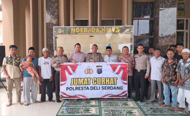 Deli Serdang – Transnusantara.co.id – Jumat Curhat merupakan program Polri dengan tujuan membangun kemitraan kepada masyarakat didalam membangun kamtibmas dan meningkatkan intensitas untuk lebih sering bertatap muka didalam menyerap aspirasi kepada masyarakat dan memberikan informasi terkait dengan situasi kamtibmas diwilayah Kabupaten Deli Serdang yang kali ini dilaksanakan di Mesjid Noer Ida Desa Penara Kebun Kecamatan Tanjung Morawa, Jumat (19/07/2024).