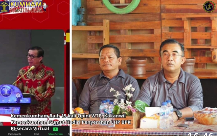 Kemenkumham Raih 15 Kali Opini WTP, Kakanwil Kemenkumham Sumut Hadiri Penyerahan LHP BPK RI Secara Virtual