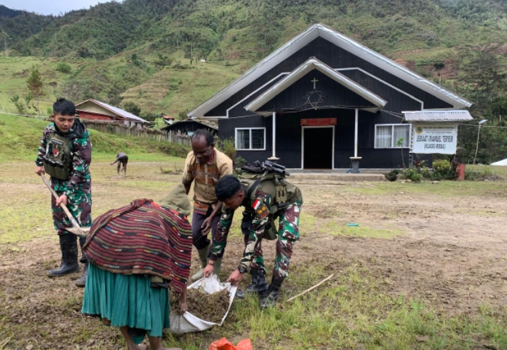 Transnusantara.co.id- Mbuwa Nduga, MediaHabema – Satuan Tugas Batalyon Infanteri (Satgas Yonif) Para Raider 432/Waspada Setia Jaya Kostrad, salah satu Satuan Jajaran Komando Operasi HABEMA di Papua, tengah melaksanakan tugas Operasi Pengamanan Perbatasan Mobil RI-PNG, khususnya di wilayah Kabupaten Nduga, Provinsi Papua Pegunungan. Pada hari Kamis, 29 Agustus 2024, Satgas Yonif 432 Kostrad, khususnya Pos Mbuwa pimpinan Lettu Inf Fahrizal, merealisasikan hasil Komunikasi Sosial dengan Tokoh Masyarakat Kampung Digilimu, Distrik Mbuwa, beserta Pimpinan dan Staf Gereja Sion, dalam rangka menyelenggarakan kegiatan kerja bakti pembersihan gereja dan lingkungannya.