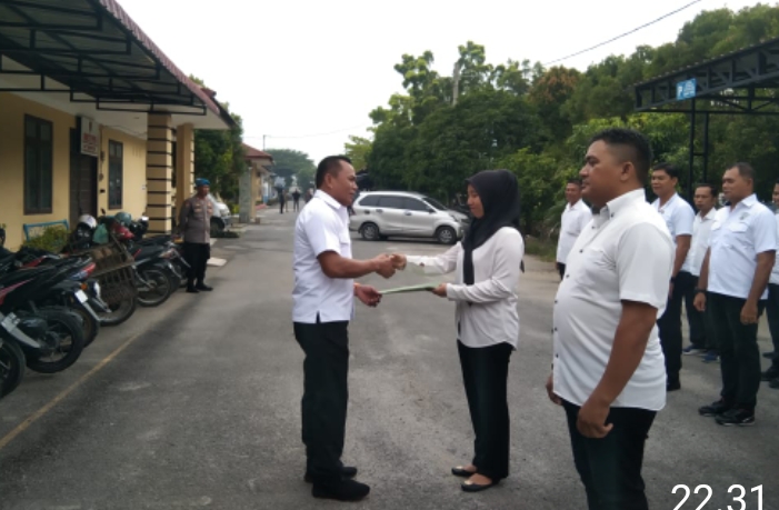 Penyerahan penghargaan oleh Kasat Reskrim AKP JH Panjaitan S.Sos SH MH, di halaman Sat Reksrim Polres Serdang Bedagai pada saat pelaksanaan Apel Fungsi, Rabu (04/09/2024).