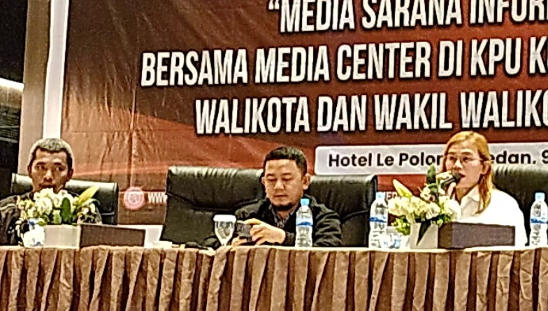 Erris Julietta Napitupulu sebagai Nara sumber memaparkan, Jurnalis sebagai mitra kerja yang mendukung tugas KPU Kota Medan. Oleh karena itu Erris mendorong perlunya kesamaan persepsi sehingga informasi yang disampaikan tepat dan proporsional.