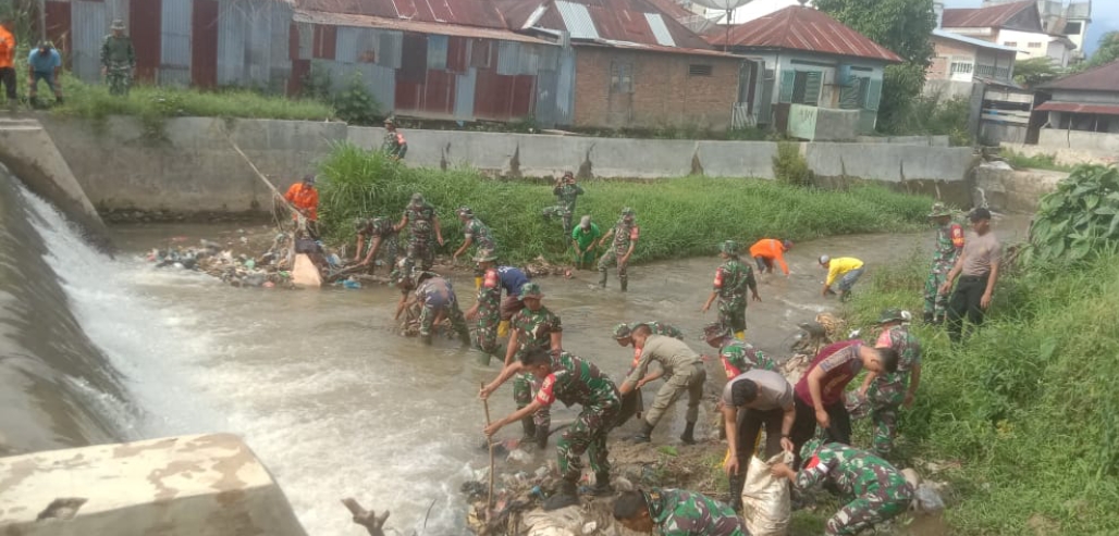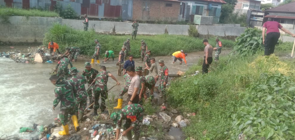 Kegiatan karya bhakti dalam menyambut HUT ke-79 TNI itu berjalan lancar. TNI, Polri, dan masyarakat bergotong royong membersihkan sungai.