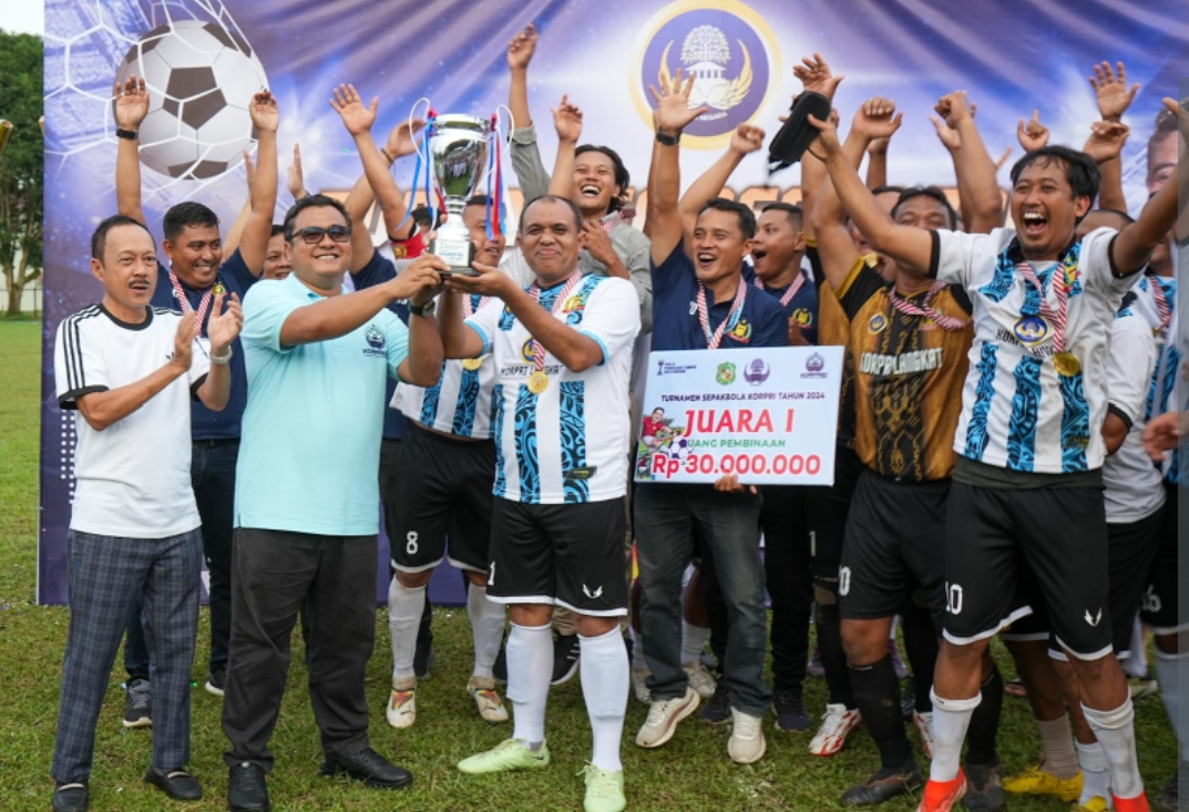 Medan, Transnusantara-Turnamen Sepak Bola Korpri Antarkabupaten/kota se-Sumut Tahun 2024 telah berakhir, Senin (30/9) petang di Stadion Mini USU. Pemkab Langkat berhasil menjuarai turnamen dan memboyong Piala Bobby Nasution yang merupakan Penasihat Korpri Medan. Diharapkan melalui turnamen ini ASN di Provinsi Sumatera Utara semakin kompak dalam berkolaborasi.