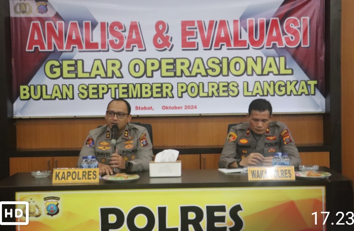 Langkat -Transnusantara.co.id – Kapolres Langkat AKBP David Triyo Prasojo SH SIK Msi, memimpin pelaksanaan Analisis dan Evaluasi (Anev) Gelar Oprasional Periode September 2024.