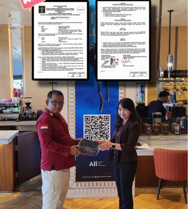 Karutan Kelas I Medan, Alanta Imanuel Ketaren, diwakili Kepala Subseksi Bimbingan Kegiatan Kerja (Kasubsi Bimker) Rutan Kelas I Medan, Irawadi Purba, disambut langsung oleh General Manager Hotel Grand Mercure Medan Angkasa, Rachmad Suwardi, melalui Director Of Sales & Manager Ibu Debby Silvia Reny.