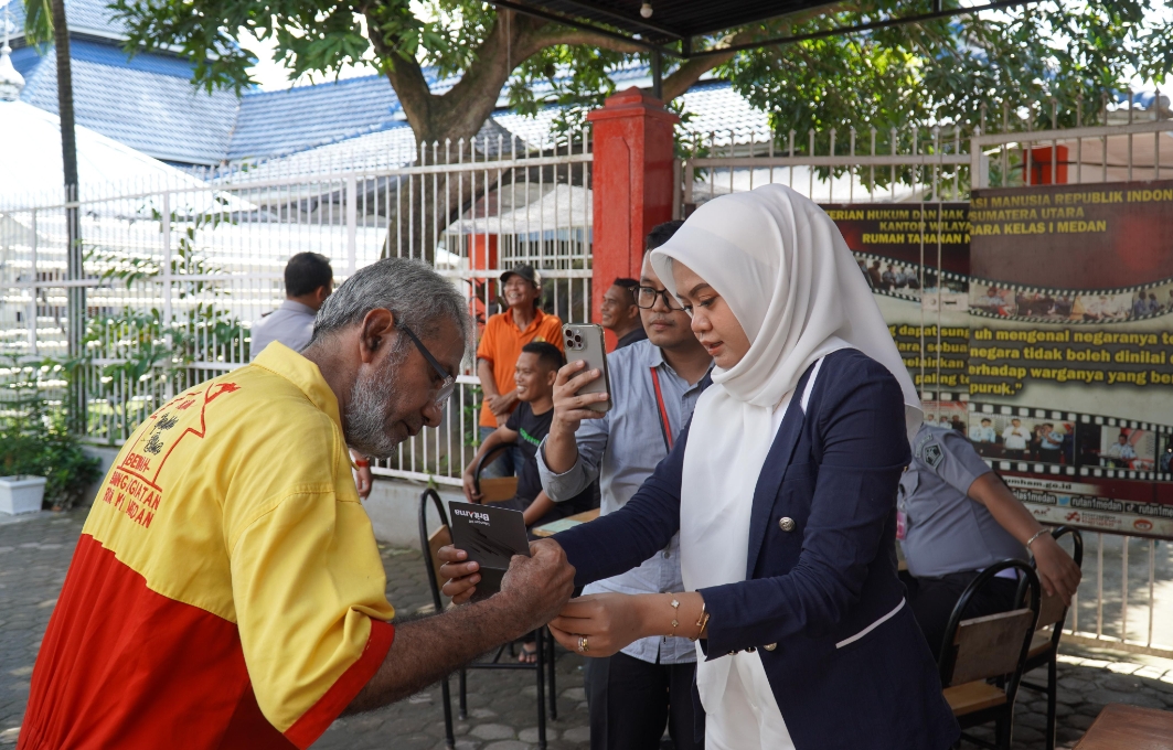 Rutan Kelas I Medan Kanwil Kemenimipas Sumatera Utara bekerja sama dengan Bank BRI membuat rekening tabungan bagi warga binaan pemasyarakatan yang telah mengikuti program pembinaan kemandirian di Rutan Kelas I Medan, Senin (16/12/2024).
