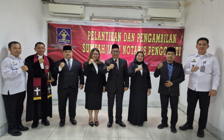 Pelantikan disaksikan oleh Kepala Bidang Pelayanan Hukum (Bintang Napitupulu) dan Kepala Subbidang Pelayanan Administrasi Hukum Umum (Surya Darma). Pelantikan dan pengambilan sumpah jabatan Notaris Pengganti ini dilaksanakan untuk menggantikan Notaris Dr. Rudy Haposan Siahaan, SH M.Kn, Notaris Kota Medan serta Notaris Lael Arofah SH, dan Notaris Dr. Melki Suhery Simamora, SE SH M.Kn, Notaris di Kabupaten Deli Serdang yang melaksanakan cuti.