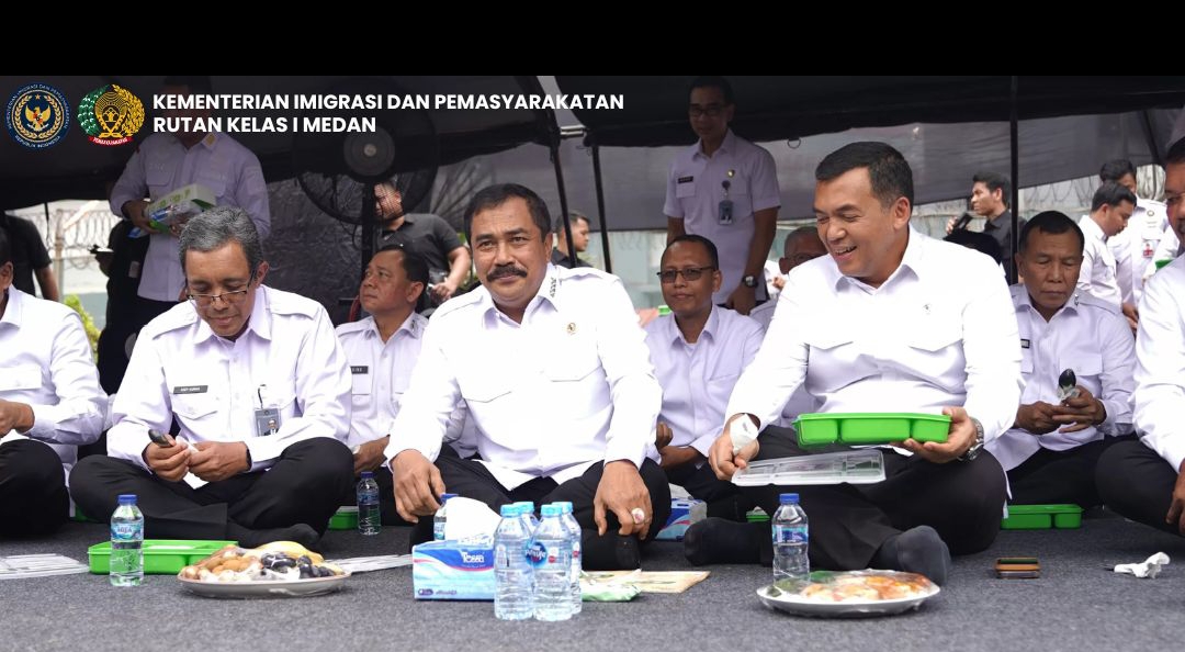 Medan – Transnusantara.co.id – Rutan Kelas I Medan mengikuti kegiatan Menteri Imigrasi dan Pemasyarakatan (Imipas) Agus Andrianto berdialog dan makan bersama dengan warga binaan Rutan Cipinang mengunjungi Rutan Kelas I Cipinang, Jakarta Timur secara virtual melalui channel YouTube PASTV Ditjenpas, Selasa ( 25/02/2025 ). Kegiatan ini merupakan implementasi dari 13 Program Akselerasi yang dicanangkan Oleh Menteri Imigrasi dan Pemasyarakatan.
