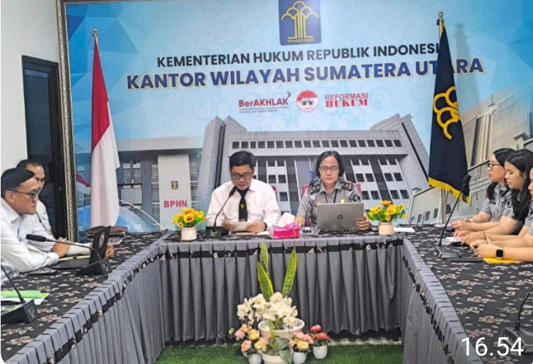 Medan – Transnusantara.co.id – Dalam rangka menyukseskan penyusunan Peta Permasalahan Hukum Provinsi Sumatera Utara Tahun 2025, Kantor Wilayah Kementerian Hukum Sumatera Utara menggelar rapat dengan stakeholder memperluas sinergi dengan beberapa instansi.
