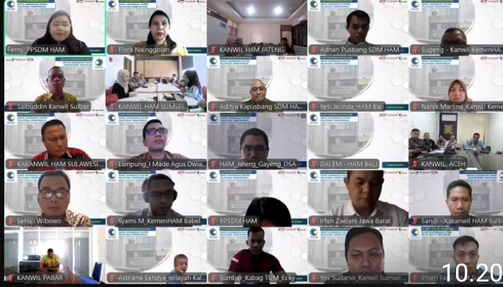Diselenggarakan oleh Pusat Pengembangan Sumber Daya Manusia KemenHAM RI, rakor daring ini dihadiri oleh Kanwil KemenHAM seluruh Indonesia.