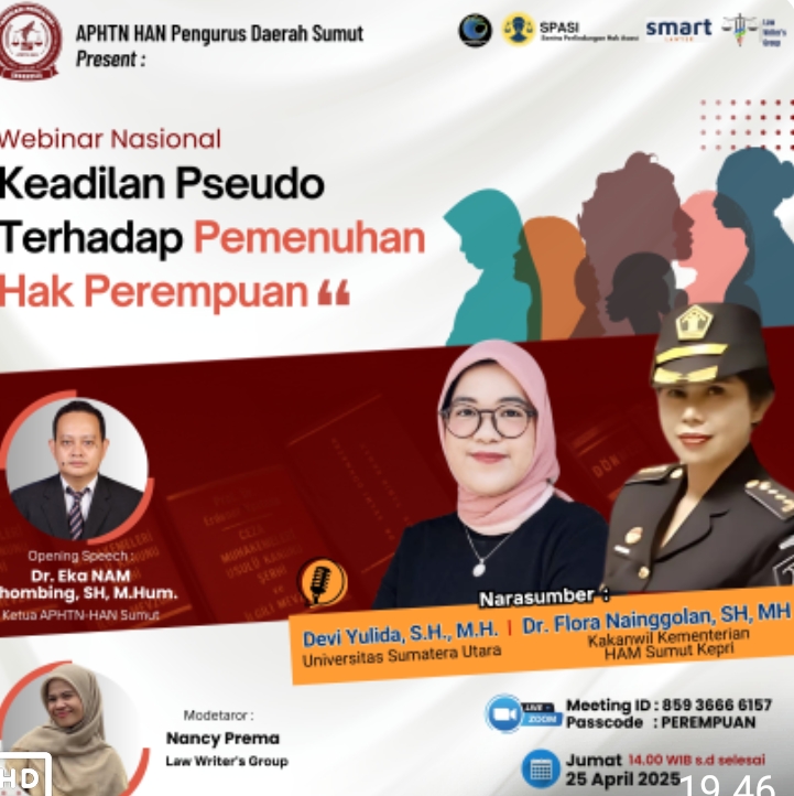 Kepala Kanwil KemenHAM Sumut, Dr. Flora Nainggolan sebagai narasumber utama dalam webinar nasional tersebut menyajikan analisis epistemologis tentang “keadilan pseudo” yang mengungkap kesenjangan antara perlindungan hak dalam peraturan dan kenyataan yang dihadapi perempuan Indonesia.