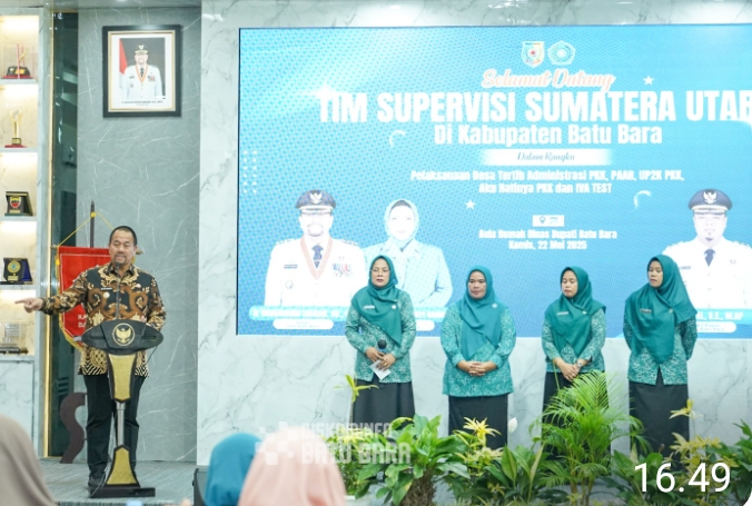 Bupati Batu Bara H.Baharuddin Siagiaan,SH,M.Si didampingi  Ketua Tim penggerak PKK Kabupaten Batu Bara, Ny.Henny Heridawaty Baharuddin menyambut hangat  kunjungan tim supervisi Tim Penggerak PKK Propinsi Sumatera Utara di Aula Rumah Dinas Bupati Batu Bara komplek perumahan pimpinan PT. Inalum Sei Suka, Kamis, 22/05/2025.
