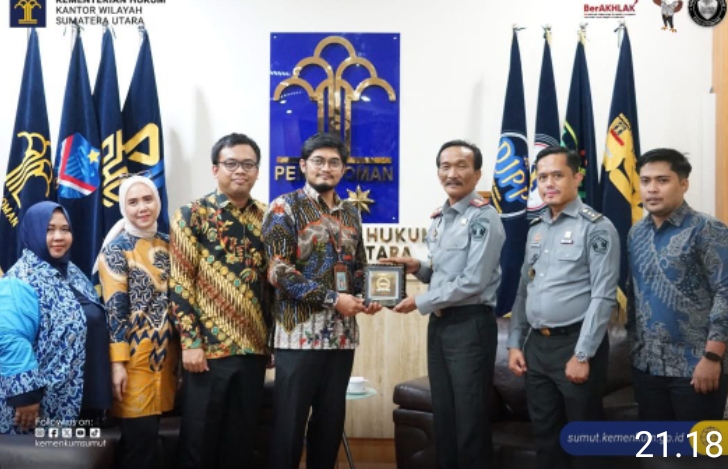 Kepala Kantor Wilayah Kemenkum Sumut, Ignatius Mangantar Tua Silalahi, menerima langsung kunjungan tersebut di ruang kerjanya, didampingi oleh Kepala Bagian Umum dan Tata Usaha, Syafriadi Lubis.