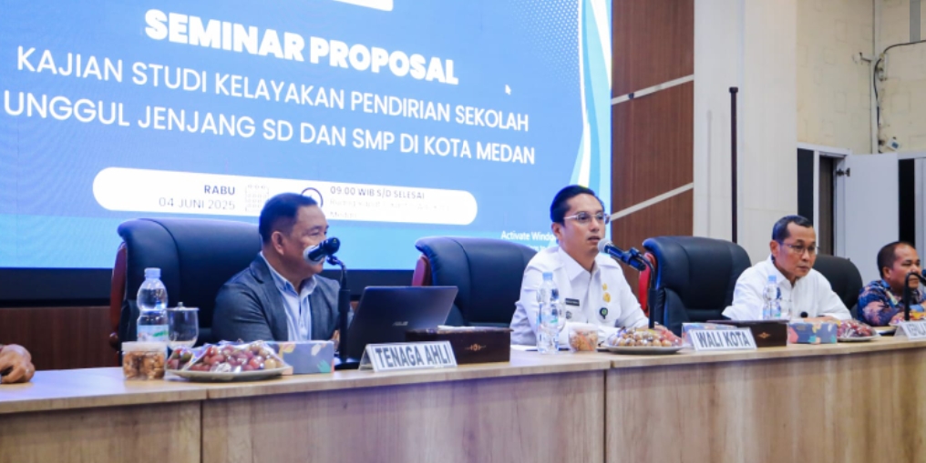 Hal ini disampaikan Wali Kota Medan Rico Tri Putra Bayu Waas pada pertemuan seminar proposal kajian studi kelayakan pendirian sekolah unggul jenjang SD dan SMP di Kota Medan di ruang rapat III, Kantor Wali Kota Medan, Rabu (4/6/25). Hadir dalam pertemuan tersebut Tenaga Ahli dari Universitas Negeri Medan, Prof Darwin, Dr Dionisius Sihombing dan Dr Rosnelli, perwakilan Badan Pusat Statistik Kota Medan, Pimpinan Perangkat Daerah di lingkungan Pemko Medan dan perwakilan PGRI.