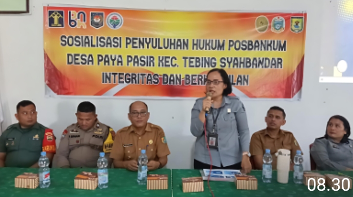 Penyuluh Hukum Ahli Madya, Lamria, mengajak masyarakat yang hadir untuk tidak ragu dalam memanfaatkan 4 layanan yang tersedia di Posbankum Desa Paya Pasir, yaitu Informasi Hukum, Bantuan Hukum dan Advokasi, Penyelesaian Konflik/Perkara, dan Rujukan Advokat.