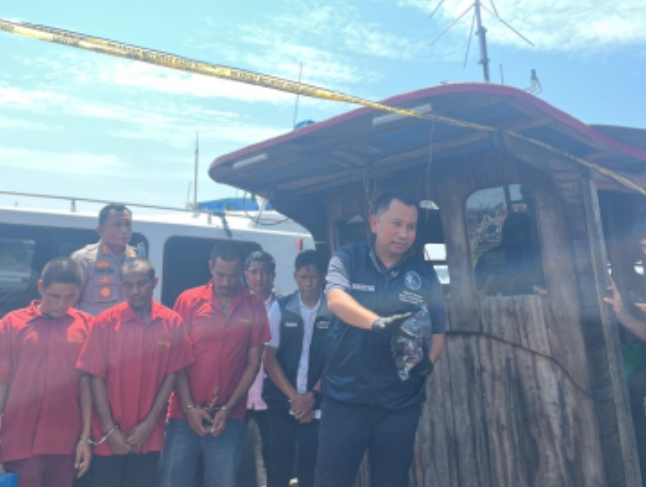 “Setelah itu personel menghentikan laju kapal dan mengamankan tiga orang berinisial AD, IS dan AM.
