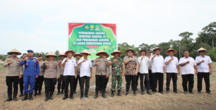 Sergai – Transnusantara.co.id – Polres Sergai mendukung penuh Program Ketapang Nasional Tanam Jagung serentak Kuartal 3 Tahun 2025, di Lahan Perhutanan Sosial Polres Sergai dusun I Desa Firdaus Kec. Sei Rampah Kab. Sergai, Rabu (09/07/25)