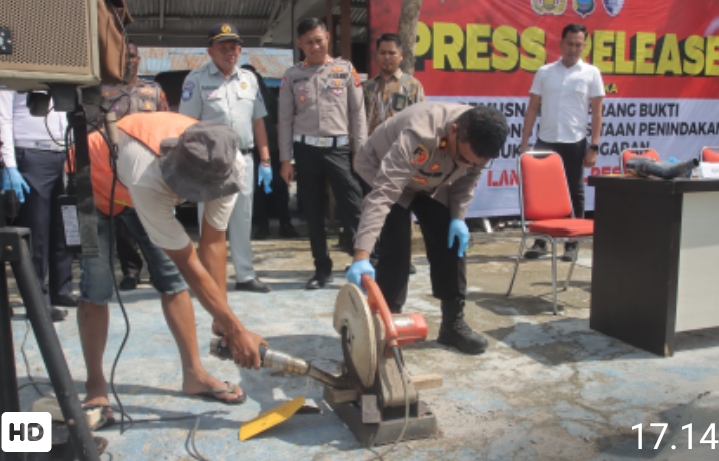 Knalpot yang disita dimusnahkan di Lapangan Uji Praktek SIM Sat Lantas Polres Sergai, Kamis (31/07/25).