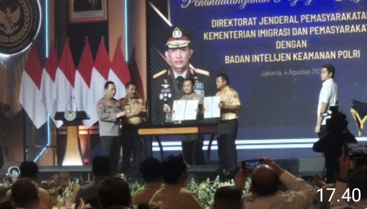Adapun perjanjian kerja sama tentang Sinergitas Dukungan Pelaksanaan Tugas dan Fungsi di Bidang Data dan/atau Informasi Tahanan, Anak, dan Warga Binaan, dan Tata Kelola Senjata Api Non Organik Polri/TNI, serta Peralatan Keamanan yang Digolongkan Senjata Api ditandatangani oleh Direktur Jenderal Pemasyarakatan Kemenimipas : Mashudi, dan Kepala Badan Intelijen Keamanan Polri, Syahardiantono.