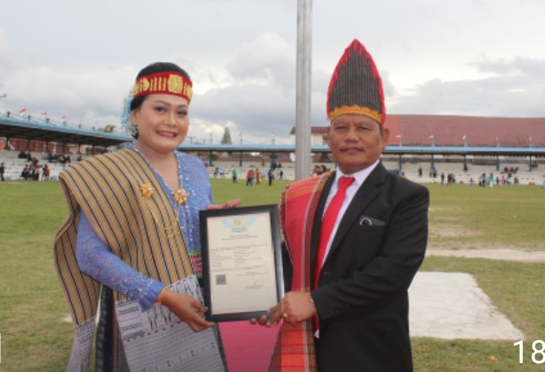 Tarutung – Transnusantara.co.id – Bupati Tapanuli Utara JTP Hutabarat menerima Sertifikat Kekayaan Intelektual dari Kanwil Kemenkum Sumatera Utara. Sertifikat diserahkan oleh Kepala Divisi Pelayanan Hukum Kanwil Kemenkum Sumut Sahata Marlen Situngkir, saat menghadiri upacara Peringatan Hari Ulang Tahun ( HUT ) Kabupaten Tapanuli Utara ke-80 di Lapangan Serbaguna Tarutung pada Senin (06/20/2025).
