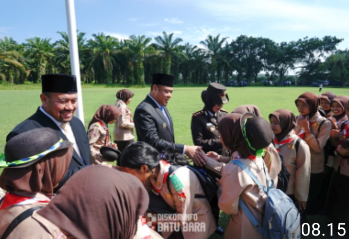 Pemkab Batu Bara, menggelar upacara yang berlangsung dilapangan sepak bola Tanjung Kasau, Kecamatan Laut tador Selasa,(28/10/2025).