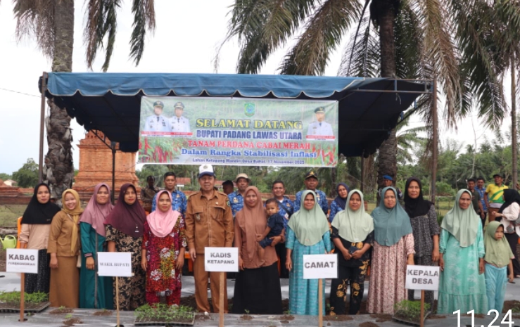 PALUTA,TransNusantata.co.id- Wakil Bupati Paluta,Basri Harahap, turut serta dalam kegiatan penanaman cabai merah yang digelar pada Selasa ( 18/11/2025 ) di desa Bahal Kecamatan Portibi Paluta. Kegiatan ini merupakan bagian dari upaya pemerintah daerah dalam mendorong ketahanan pangan sekaligus menekan potensi inflasi daerah.