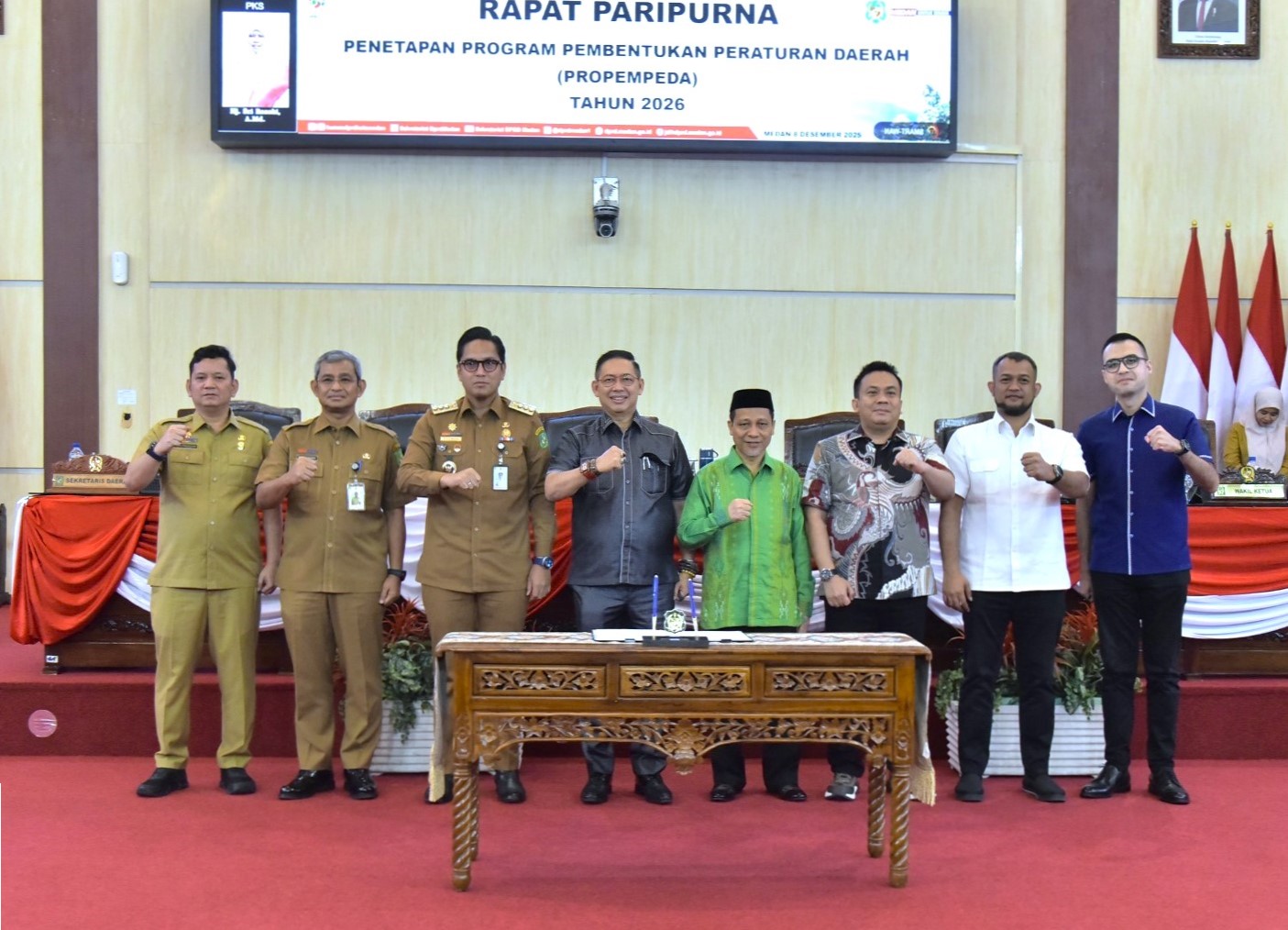 Selanjutnya, Rapat Paripurna dilanjutkan dengan penandatanganan kesepakatan bersama antara DPRD Kota Medan dengan Pemerintah Kota Medan atas Penetapan Propemperda Kota Medan Tahun 2026 yang ditandatangani oleh Pimpinan DPRD Kota Medan dan Wali Kota Medan.