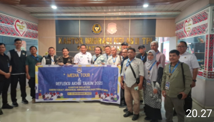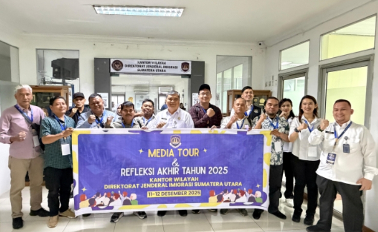Medan TransNusantara.co.id– Kantor Wilayah Direktorat Jenderal ( Ditjen ) Imigrasi Sumatera Utara menggelar kegiatan Media Tour dan Refleksi Akhir Tahun 2025 bersama 17 jurnalis dari berbagai media cetak, dan siber, selama 2 hari ( 11-12 Desember 2025 ). Kegiatan ini menjadi ruang dialog terbuka mengenai capaian kinerja pelayanan keimigrasian sepanjang 2025.