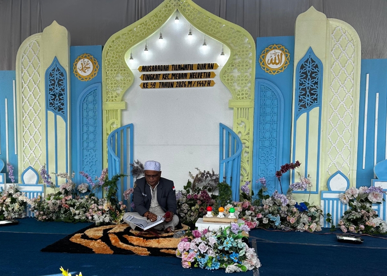 Medan – Transnusantara.co.id – Seorang warga binaan Lembaga Pemasyarakatan (Lapas) Kelas I Medan dipercaya membacakan ayat suci alqur’an pada Pembukaan Musabaqah Tilawatil Qur’an (MTQ) Tingkat Kecamatan Helvetia ke-59 Tahun 2026 M/1447 H yang digelar di Masjid Asy-Syakirin, Sabtu (07/02/2026).