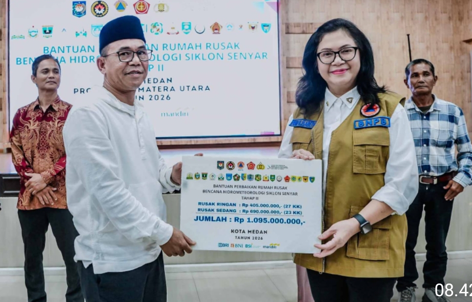 Medan, Transnusantara–Pemerintah terus mempercepat pemulihan pascabencana melalui Satuan Tugas (Satgas) Percepatan Rehabilitasi dan Rekonstruksi Pascabencana Alam di Provinsi Aceh, Sumatera Utara, dan Sumatera Barat. Bantuan Tahap II Program Bantuan Perbaikan Rumah Rusak akibat bencana hidrometeorologi Siklon Senyar juga diberikan kepada warga terdampak banjir di Kota Medan.