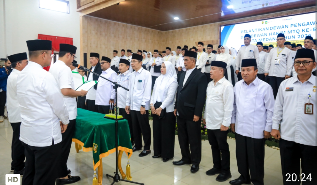 Medan, Transnusantara- Menjelang pelaksanaan Musabaqah Tilawatil Qur’an (MTQ) Ke- 59 tingkat Kota Medan yang digelar pada 11- 18 April 2026, Wali Kota Medan Rico Tri Putra Bayu Waas melantik Dewan Pengawas dan Dewan Hakim di Gedung Serbaguna PKK Kota Medan, Jalan Rotan, Medan Petisah, Jumat (10/4/26).