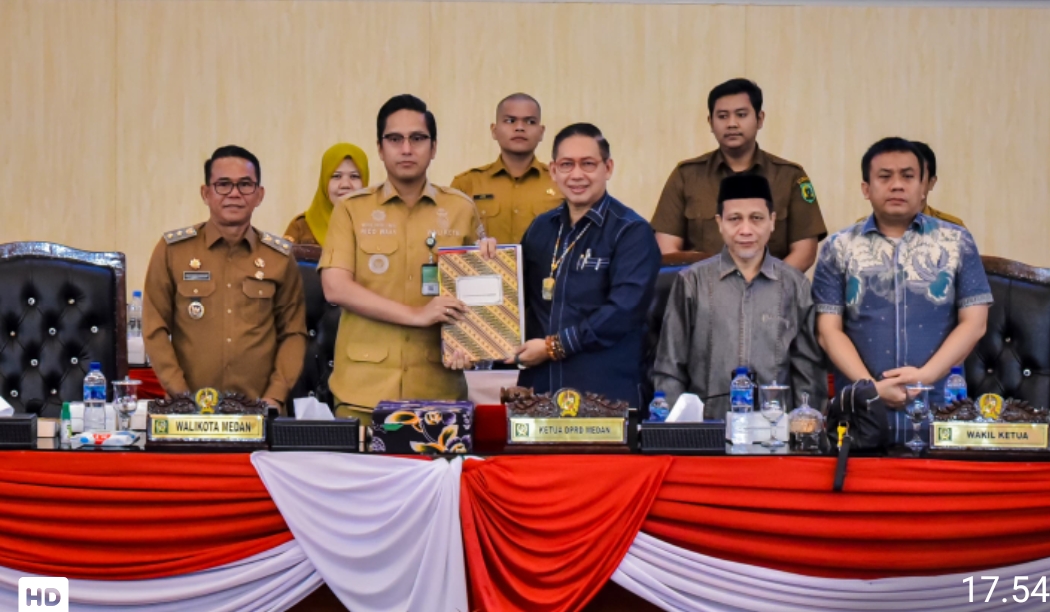 Medan, TransNusantara -Wali Kota Medan, Rico Tri Putra Bayu Waas, menghadiri sidang paripurna Dewan Perwakilan Rakyat Daerah (DPRD) Kota Medan dengan agenda penyampaian jawaban fraksi-fraksi atas tanggapan kepala daerah terhadap Rancangan Peraturan Daerah (Ranperda) inisiatif DPRD tentang perubahan Peraturan Daerah Nomor 4 Tahun 2012 mengenai Sistem Kesehatan Kota, Senin (6/4/2026).