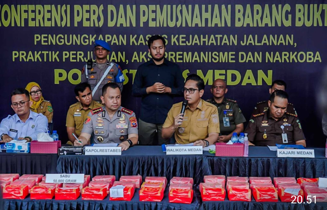 Dalam konferensi pers dan pemusnahan barang bukti di Lapangan Polrestabes Medan, Senin (13/4/2026), Rico Waas menyebut pengungkapan kasus yang terus berulang menjadi bukti nyata ancaman serius yang dihadapi Kota Medan.