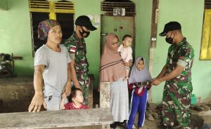 Transnusantara.co.id, Badau iLir, Anggota Satgas Pamtas RI-Malaysia Yonif 144/JY memberikan bantuan