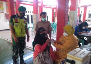 Babinsa Srengat Dampingi Kegiatan Serbuan Vaksinasi Covid-19 Di Wilayah Binaannya