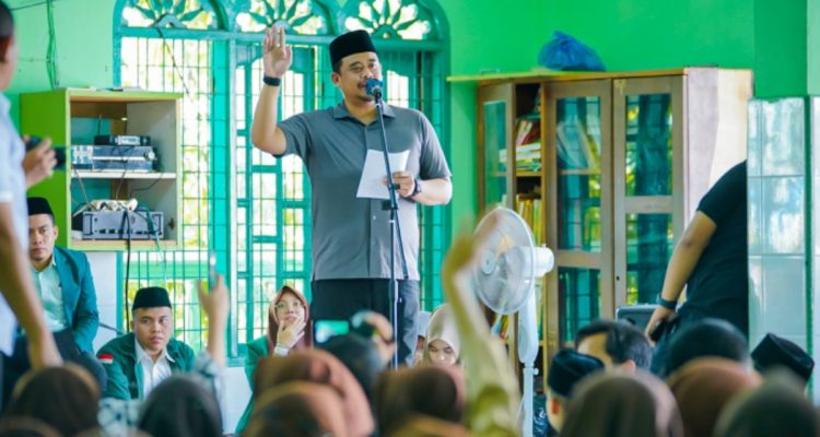 Medan, Trans Nusantara–Pelajar Al Washliyah antusias menyambut kehadiran Wali Kota Medan