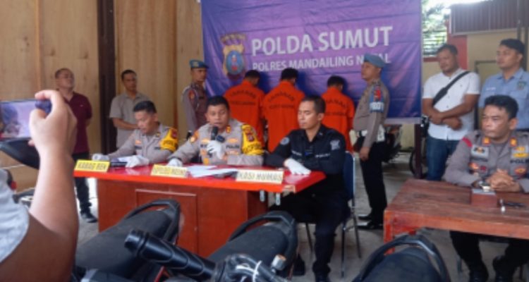 Foto : Kapolres Madina saat melakukan konferensi pers di halaman kantor