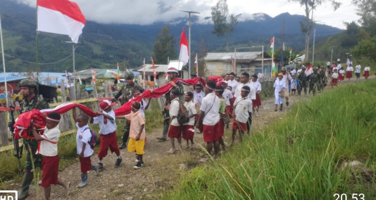 Kemeriahan Kirab Dan Pengibaran Bendera Merah Putih Oleh Habema Dan Masyarakat Sinak