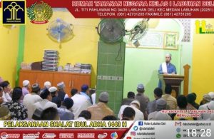 Petugas Rutan Kelas I Labuhan Deli Kanwil Kemenkumham Sumut Laksanakan Sholat Idul Adha Bersama Warga Binaan Pemasyarakatan