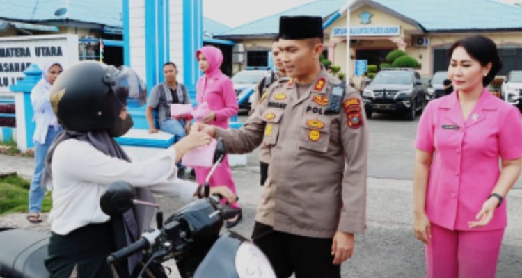 Polres Asahan Beserta Jajaran Bagikan Takjil di Depan Satlantas Jalan Cokroaminoto Kisaran