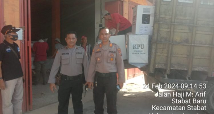 Polres Langkat Kawal Ketat Kotak Suara Rekapitulasi Pemilu Dari PPK Kecamatan Stabat ke Gudang KPU