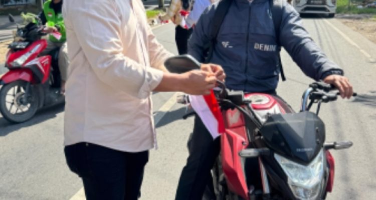 Polsek Padang Tualang Bagikan Bendera Merah Putih kepada Pengguna Jalan