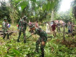 Satgas Pamtas Yonif 126/KC Ajak Warga Perbatasan Bersihkan Makam Masyarakat