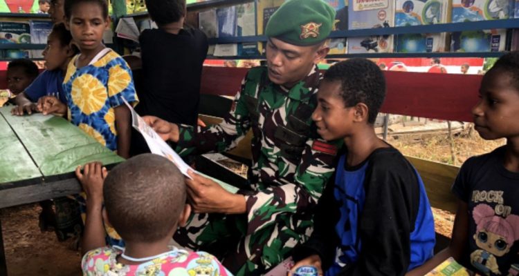 Satgas Yonif 125/SMB Bangun Sebuah Honai Baca Dorong Literasi dii Papua