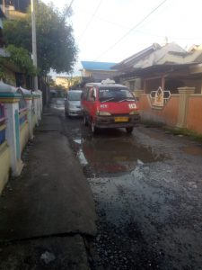 TRANSNUSANTARA.CO.ID, MEDAN — Pengandara melintasi jalan Bilal Gang Rakyat Kota