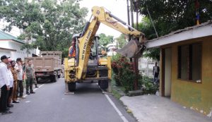 Tim Gabungan Satpol PP Medan Bongkar Bangunan yang berdiri di atas Drainase