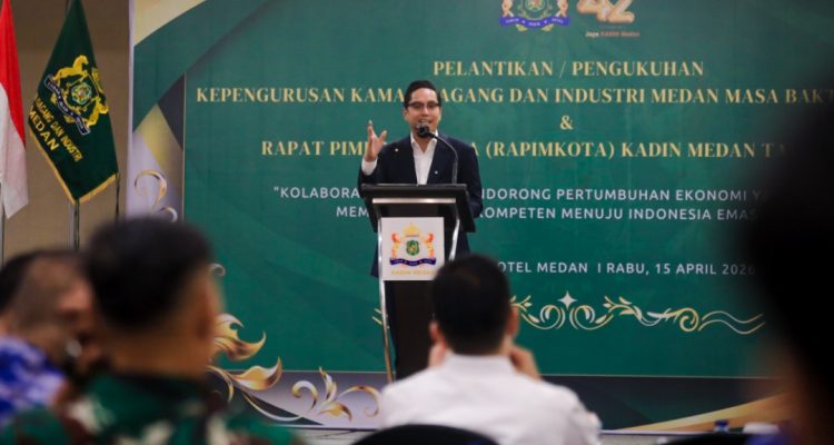 Wali Kota Medan Beri Kata Sambutan pada Acara Pelantikan Pengurus Kadin Kota Medan Periode 2025-2030